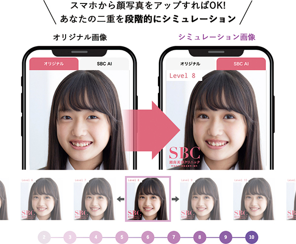湘南美容クリニックでは、スマホ1つで来院前に、AIで二重をシミュレーションすることが◎