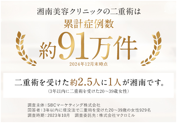 二重整形の累積症例数が90万人以上を突破※1している湘南美容クリニックは、2.5人に1人が選ぶ※2クリニックでもあります!